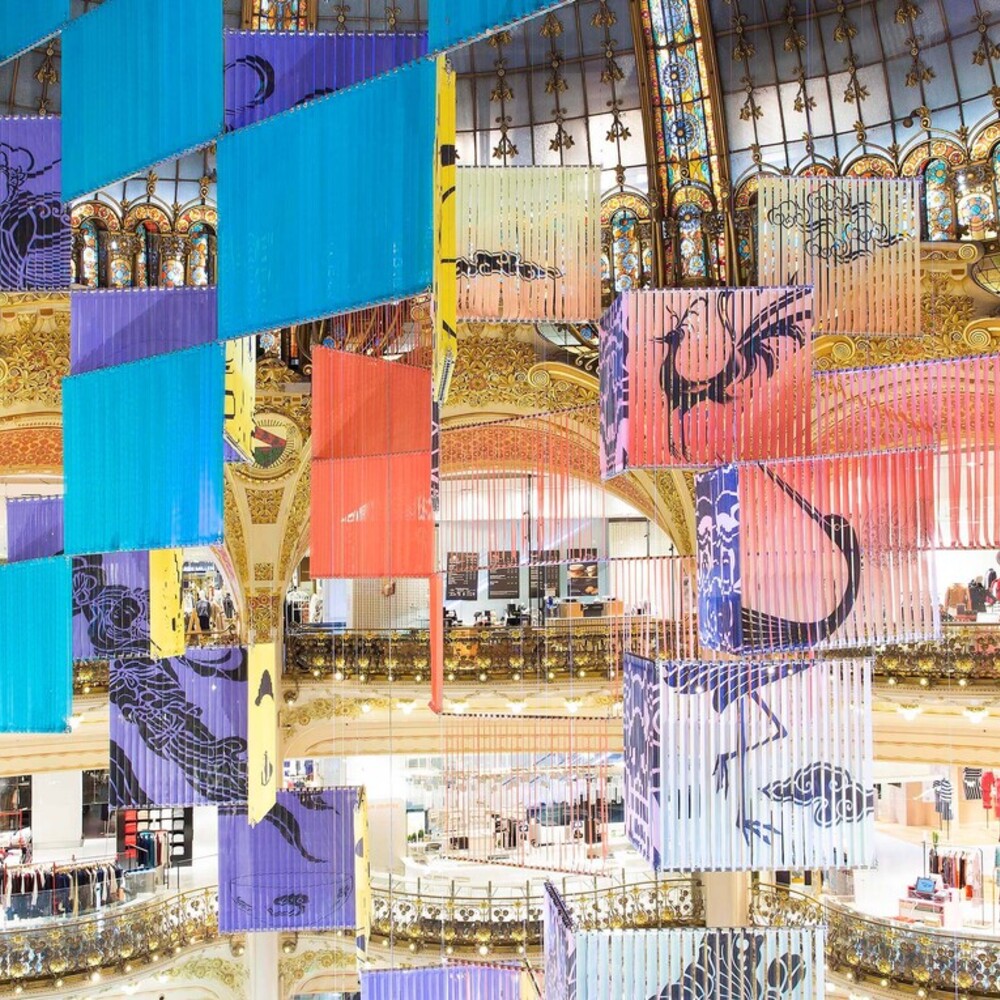 Galeries Lafayette invites its customers to the heart of a prestigious setting that immerses them in an irrational and enchanting place, creating a unique experience. The brand invites artists and designers to create original works in the department stores' and under its dome, which enhance and sublimate this architectural heritage.